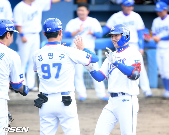 김상수는 25일 일본 오키나와 아카마 볼파크에서 열린 한화 이글스와의 연습경기에서 0-7로 뒤진 2회 좌월 투런 아치를 터뜨렸다. 23일 자체 평가전에 이어 2경기 연속 홈런.