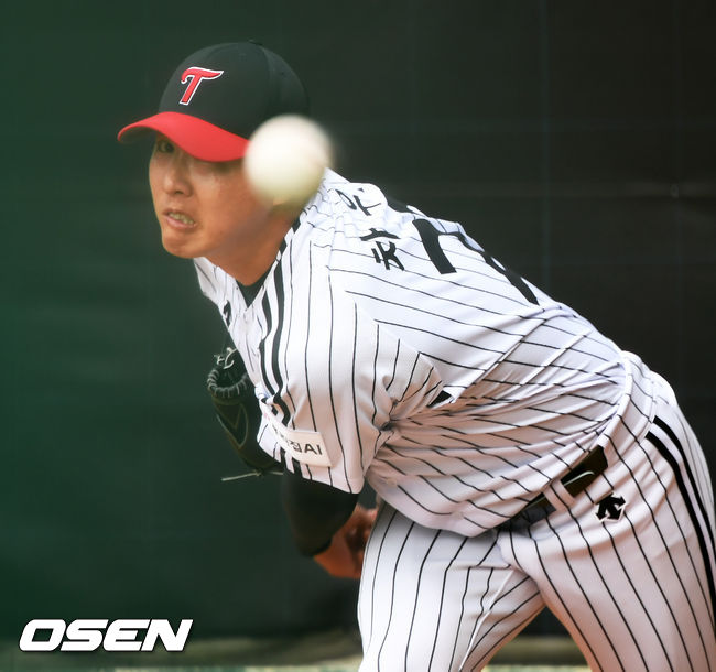 차우찬은 26일 일본 오키나와 이시카와 구장에서 불펜 피칭에 나섰다. 호주 시드니 캠프에서 한 차례 불펜 피칭을 한 그는 이번이 캠프 2번째 불펜 피칭. 최일언 투수코치 등이 지켜보는 가운데 조심스럽게 피칭에 나섰다.