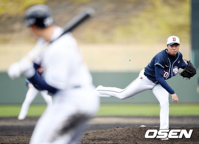 이영하는 26일 일본 미야자키 선마린구장에서 열린 세이부 라이온스와의 구춘대회에 두 번째 투수로 마운드에 올랐다.