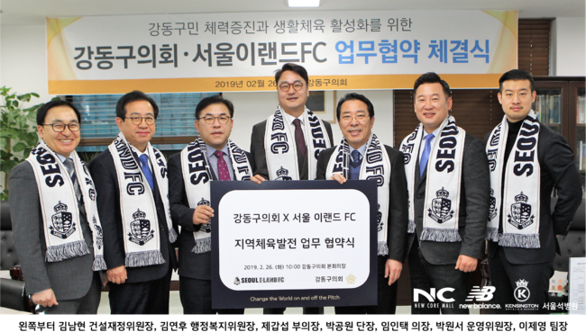서울 이랜드는 26일 강동구의회 본회의장에서 강동구의회와 지역 체육 발전 업무 협약을 맺었다.
