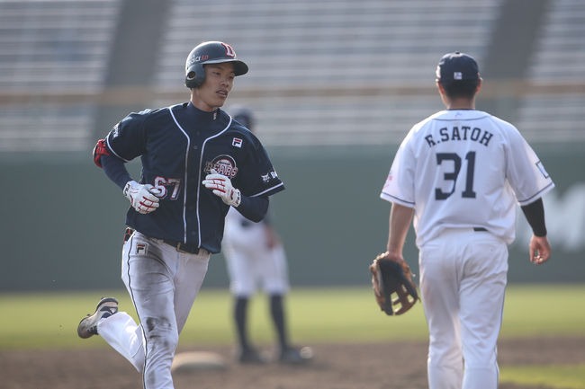 김경호는 발전된 모습을 다시 한 번 김태형 감독 앞에서 보여줬다. 26일 ‘구춘 대회’ 세이부 라이온스전에서 1-0으로 앞선 9회초 우측 담장을 넘어가는 홈런을 만들어냈다. 퓨처스리그에서도 홈런 못 본 김경호 스스로도 “진짜 깜짝 홈런이었다”라며 미소를 지었다. 김경호의 홈런으로 두산은 2-0으로 세이부 라이온즈를 잡고 이날 경기를 승리로 마쳤다.