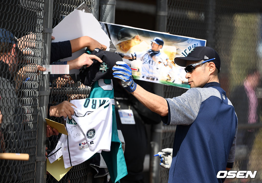 이날 이치로를 응원하기 위해 수십 명의 팬들이 시애틀 캠프를 찾았다. 이치로는 훈련 중 시간을 내 팬들에게 정성스럽게 사인을 해줬다. 수십 명의 팬들이 사인을 요구했지만 싫은 기색 한 번 없었다. 자신에게는 엄격하지만 팬들에게는 자상한 그의 풍모는 ‘레전드’라는 칭호가 전혀 아깝지 않았다.