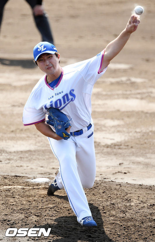 삼성 신예 최채흥이 연습경기에서 부진했다.