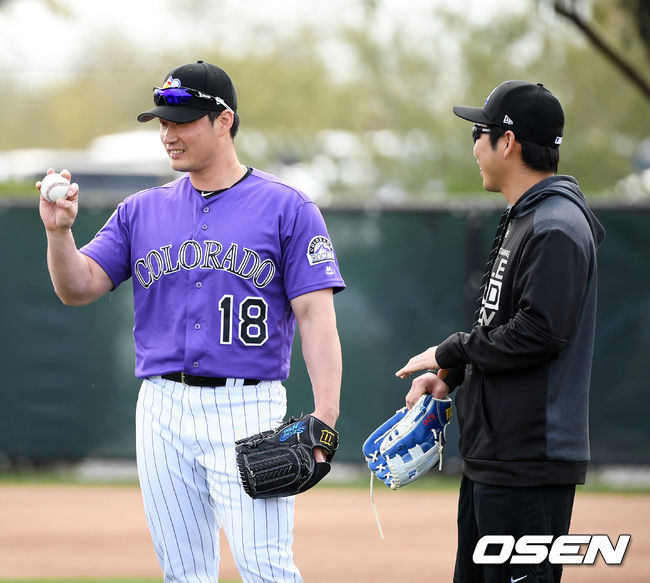 오승환의 동료 놀란 아레나도는 28일 콜로라도 스프링캠프장에서 재계약에 대한 공식기자회견을 개최했다. 아레나도의 재계약에 대한 오승환의 의견을 직접 들어봤다.