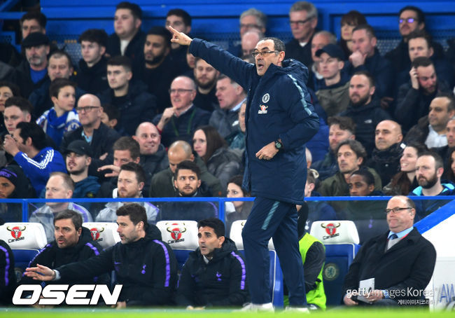 사리 감독이 이끄는 첼시는 28일 영국 런던 스탬퍼드 브리지서 열린 2018-2019시즌 잉글랜드 프리미어리그(EPL) 28라운드 토트넘과의 경기에서 2-0으로 완승을 거뒀다.
