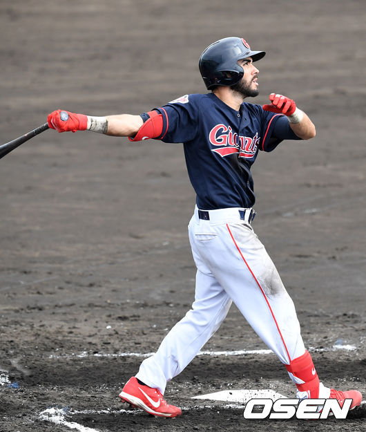롯데 자이언츠 카를로스 아수아헤가 연습경기 첫 홈런포를 가동했다.