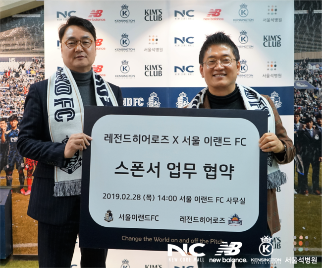 서울 이랜드 FC가 국내 최초 스크린 스포츠 테마파크인 레전드 히어로즈와 28일 스폰서 업무협약을 체결했다.
