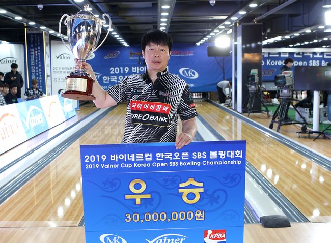 서정환은 28일 용인 레드힐 볼링라운지 경기장에서 열린 시즌 개막전이자 메이저 대회인 '2019 바이네르컵 한국오픈 SBS 프로볼링대회' 최종결승전에서 여자 볼링국가대표 출신 차미정(50, 팀 스톰)을 236-225로 꺾고 정상에 섰다.