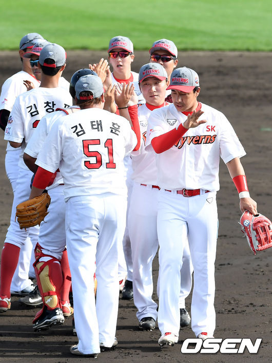 SK는 선발 문승원에 이어 이승진, 박정배, 김택형, 하재훈, 신재웅, 정영일, 김태훈이 1이닝씩 이어던졌다. 염경엽 SK 감독은 경기 후 "타자들이 타석에서 해야 할 것들을 잘 실행하면서 타격감이 서서히 올라오고 있는 점이 고무적이다"며 "투수들은 신구 승리조를 테스트해 봤는데, 내용이 나쁘지 않았다. 이런 좋은 좋은 흐름을 이어갔으면 하는 바람이다"고 말했다.