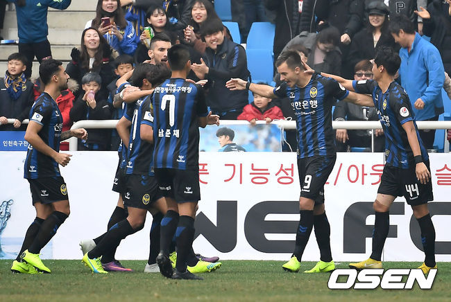 인천은 2일 오후 인천축구전용경기장서 열린 '하나원큐 K리그1 2019' 1라운드서 제주와 1-1로 비겼다. 전반 이창민에게 환상적인 중거리 선제골을 내줬지만 후반 무고사의 페널티킥 동점골로 승부를 원점으로 돌렸다. 이날 인천엔 2012년 전용경기장 개장 이래 역대 최다인 1만 8541명의 구름관중이 운집했다.