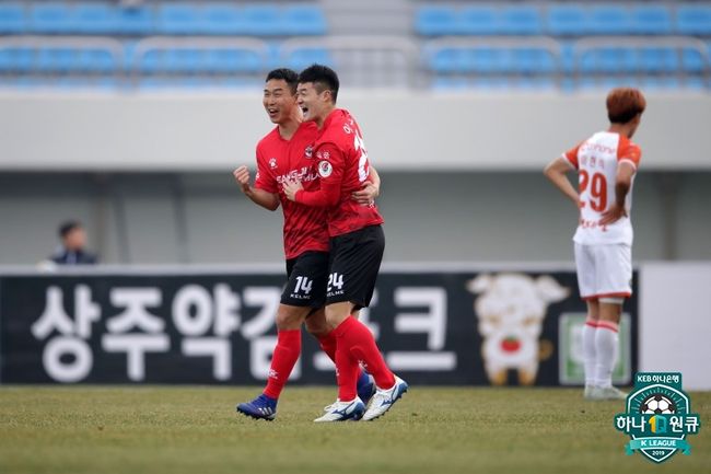 상주 상무가 강원FC를 꺾고 기분 좋은 시작을 알렸다.