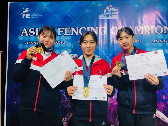 한국 여자 펜싱 대표팀은 요르단 암만에서 개최된 2019 아시아유소년펜싱선수권대회에 참가해 에뻬 단체전과 사브르 단체전에서 동반 우승을 차지했다.