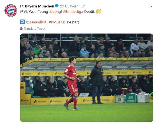 경기 후 뮌헨은 구단 SNS를 통해 한글로 "안녕"이라는 말과 함께 "정우영이 분데스리가에 데뷔했다"고 전했다.