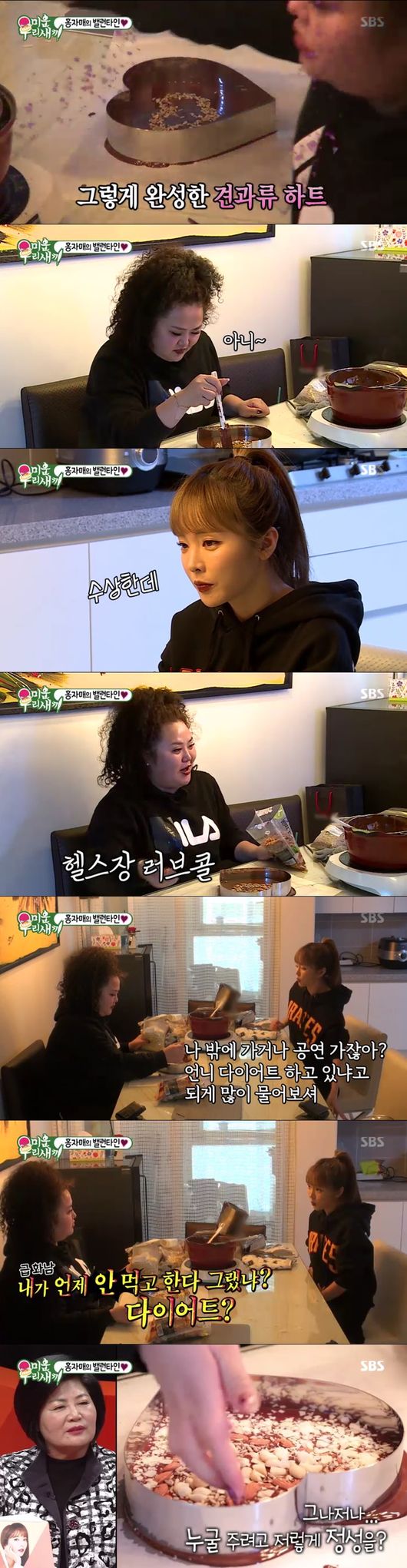 홍진영, 홍선영 자매가 그려졌다. 두 사람은 아침부터 발렌타인 데이를 맞이해 초콜릿을 직접 만들었다. 아버지를 위한 초콜릿을 만들겠다고. 母는 "우리 딸들이 못하는 것이 없다"고 기특해했다.