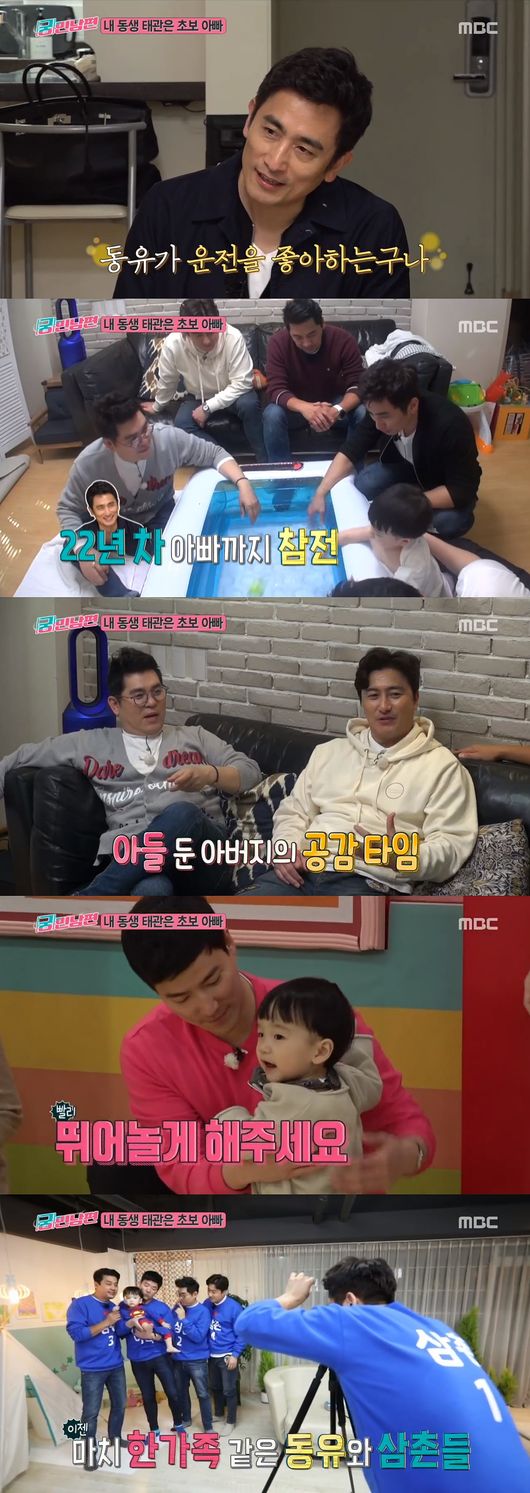 조태관은 아들 동유가 태어난 지 18개월 만에 처음으로 휴가가 주어진 아내 노혜리를 위해 나홀로 육아에 나섰다. 특히 엄마와 아들이 처음으로 떨어지는 순간이었기에 집을 떠나는 순간까지도 노혜리는 걱정 가득한 모습을 보였다. 이에 아직 서툰 초보 아빠인 막내를 위해 차인표, 안정환, 김용만, 권오중이 도와주기에 나섰지만 동유와의 첫 인사부터 순탄치 않아 웃음을 안겼다.