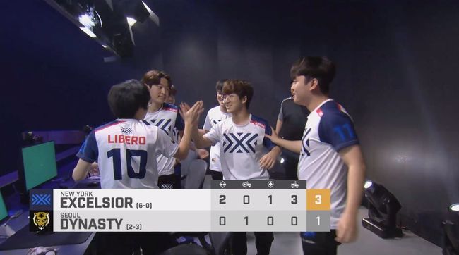 뉴욕 엑셀시어는 4일 오전(이하 한국시간) 미국 캘리포니아주 로스앤젤레스 버뱅크 '블리자드 아레나'서 열린 '오버워치 리그' 시즌2 서울 다이너스티와 스테이지1 3주차 마지막 경기서 3-1로 파죽의 6연승을 달렸다. 이번 승리로 뉴욕은 스테이지1 6승 0패 전장득실 +12을 기록하면서 1위를 유지했다. 서울은 시즌 2연패(2승 3패 전장득실 0, 13위)를 당하며 플레이오프 진입에 빨간불이 켜졌다.