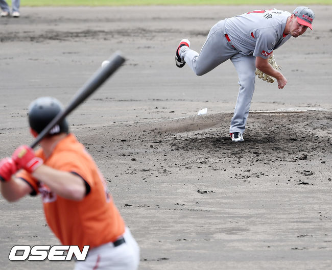 이날 직구 최고 구속은 145km. 구종도 다양하게 던졌다. 관계자는 "150km가 넘는 강속구가 아닌 다양한 구종으로 로케이션이 장점으로 보인다"며 "구속까지 150km 넘게 나온다면 KBO리그에 오지 않고 메이저에서 뛰지 않겠나"라고 덧붙였다.