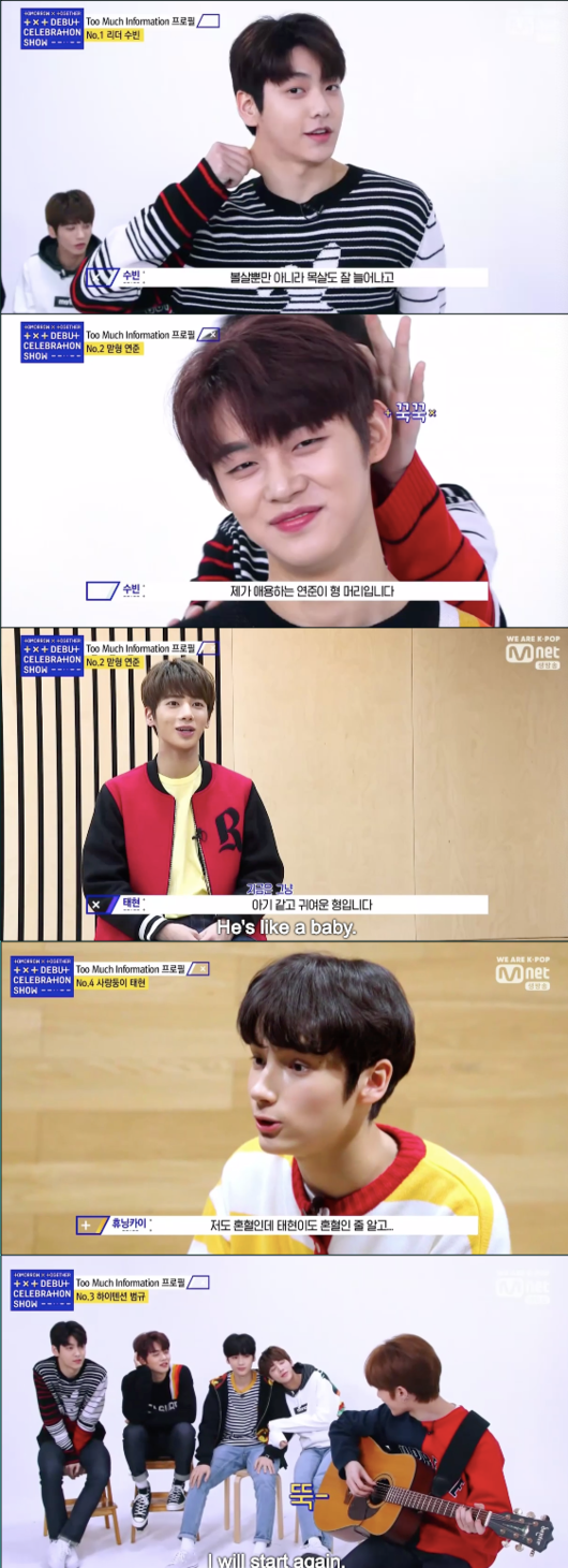 수빈은 “데뷔확정이 발표되고 나서 멤버들 생각이 제일 많이 났다고 말하자 범규는 “이제 정말 시작이구나라는 느낌이 들었다”고 털어놨다.
