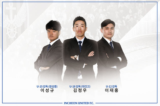 인천 구단은 5일 보도자료를 통해 “인천유나이티드 유소년 코칭스태프를 새롭게 구성하게 됐다. U-18 대건고 김정우 감독, U-15 광성중 이성규 감독, U-12 이재홍 감독이 각각 팀을 이끌게 됐다”라고 밝혔다.