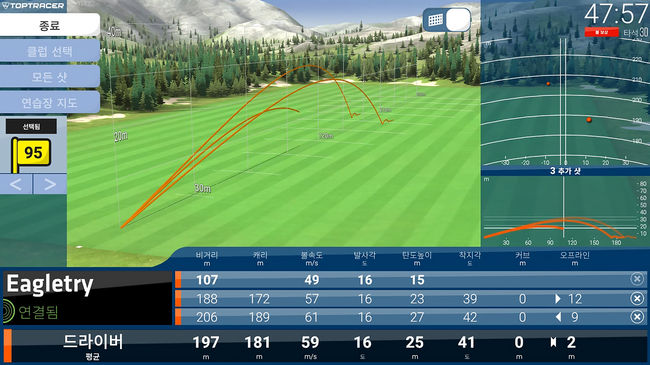 뿐만 아니라 티샷과 세컨샷 연습, 그리고 바람의 영향까지 그대로 보여지며, 니어리스트와 포인트 게임까지 즐길 수 있다.