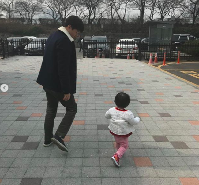 공개된 사진 속 조우종은 KBS 앞에서 딸 아윤 양을 품에 안고 미소를 짓고 있다. 또 다른 사진 속 조우종은 아장아장 걷고 있는 딸을 사랑스럽게 지켜보며 '딸 바보' 면모를 과시했다.