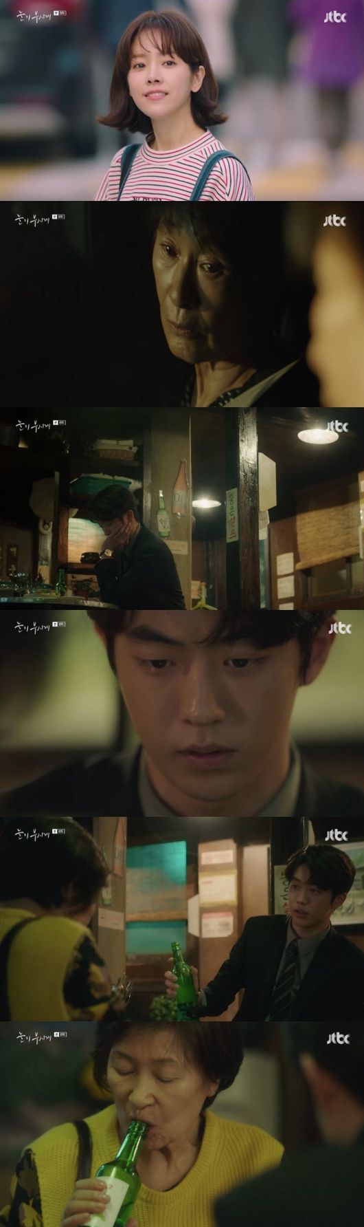 이날 앞서 김혜자는 술집에서 혼자 술을 마시고 있는 이준하(남주혁 분)를 발견하고 무언가 결심한 듯 비장하게 걸어 들어갔다. 혜자는 소주를 원샷한 뒤 “혜자가 못 온대. 미안하대. 진짜 많이 미안하대”라고 말문을 열었다. 앞서 혜자는 준하에게 자신이 젊은 혜자(한지민 분)의 이모 할머니라고 소개했던 바.