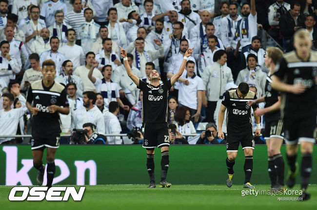 안정적인 경기 운영을 한 아약스는 끝까지 리드를 지키며 합계 점수 5-3으로 레알 마드리드는 넘고 8강 진출에 성공했다. / 10bird@osen.co.kr
