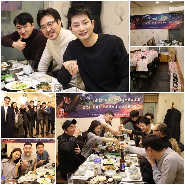 이에 한창 촬영에 임하고 있던 배우들과 스태프들이 함께 둘러앉아 소고기를 먹으며 힐링하는 진풍경이 벌어졌다. 더욱이 장희진, 윤진호, 윤봉길 등 같이 열연 중인 배우들과 스태프들이 든든한 ‘한우 밥상’을 즐기며 기운을 끌어올린 가운데, 박시후가 건배사를 전했던 터. 박시후는 후반부에 들어서면서 더욱 치열해지고 있는 ‘바벨’ 촬영을 위해 열정을 불태우고 있는 촬영팀과 동료들을 향한 믿음과 응원, 그리고 고마움의 마음을 전해 모두의 마음을 찡하게 만들었다.