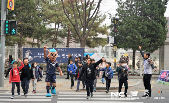 서울 이랜드는 구단 마스코트 '레울'을 십분 활용하고 있다. '레울'은 학생들과 신호등을 같이 건너고, 함께 사진을 찍으며 신학기에 들어가는 학생들에게 즐거움을 선사했다.