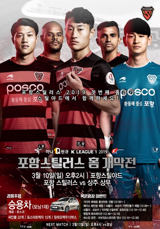 포항은 오는 10일 오후 2시 포항스틸야드에서 상주 상무와 하나원큐 K리그1 2019 홈 개막전으로 치른다.