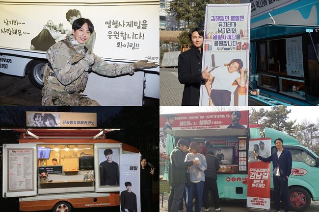 뿐만 아니라 김남길의 연예인 동료들도 '열혈사제'에 힘을 실어주고 있다. 이날 씨제스 엔터테인먼트 공식 SNS 채널에는 김남길의 다양한 커피차 인증샷이 올라왔다. 다름아닌 배우 설경구 유지태 김재욱부터 홍종찬 감독이 촬영중인 김남길에게 보낸 따뜻한 선물이었던 것이다.