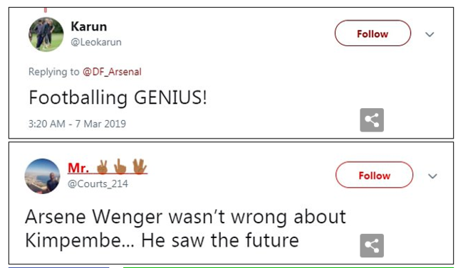 영국 데일리 메일은 9일 '벵거의 예언에 팬들이 환호하고 있다'고 전했다. 벵거는 맨유-PSG의 1차전을 앞두고 beIN스포츠의 해설가로 나서 킴펨베의 수비에 대해 지적했다. 그는 "투헬 PSG 감독은 2가지 중요한 결정을 했다. 마르퀴뇨스를 수비수로 기용하지 않고, 킴펨베를 기용했다. 킴펨베는 최근 자신의 위치에서 확신을 주지 못했다. 너무 많이 충동적이고 파울을 많이 저지른다"고 언급했다.
