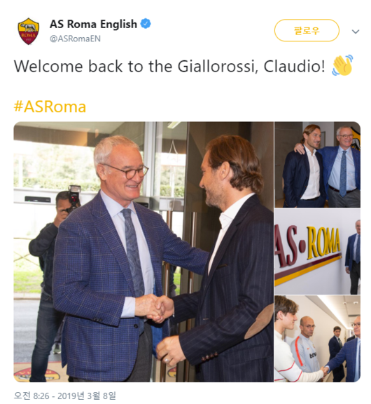 로마는 과거 2009년 로마를 지휘했던 일이 있는 라니에리 감독을 다시 선임하며 팀 재정비에 나설 계획이다.