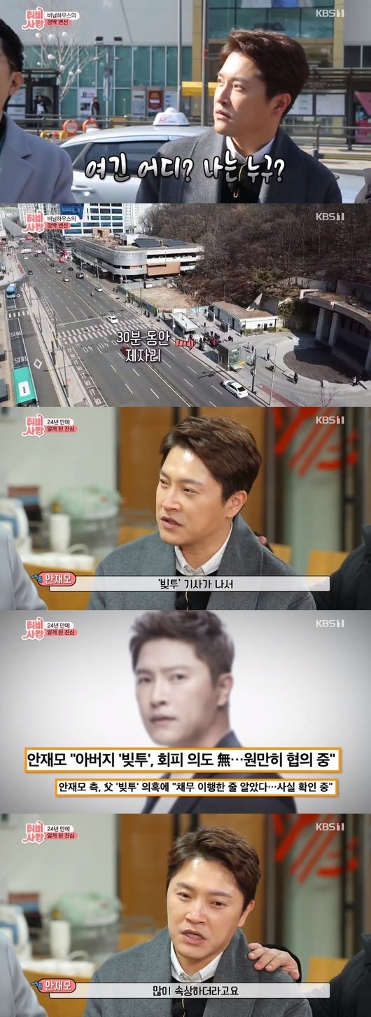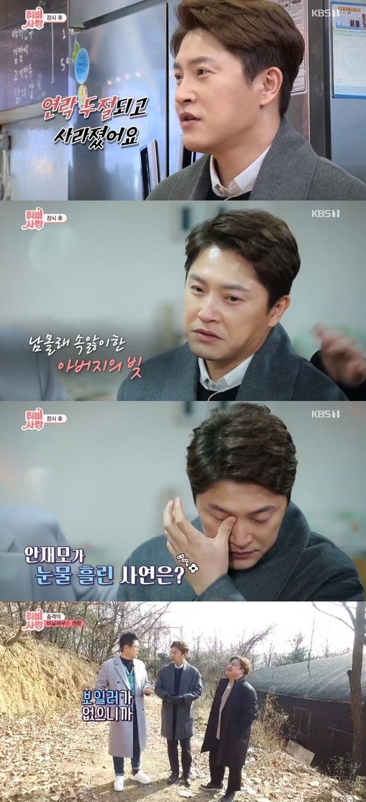 안재모는 지난 8일 방송된 KBS 1TV 예능 프로그램 'TV는 사랑을 싣고'(이하 'TV사랑')에 게스트로 출연했다. 그는 이날 방송에서 어린 시절 불우한 환경에도 불구하고 자신을 친형제처럼 따라준 의남매들을 찾았다.