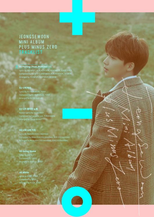 트랙리스트에 따르면 정세운의 새 앨범에는 타이틀곡 'Feeling (Feat. PENOMECO)'(필링)을 비롯해 '나의 바다', '니가 좋아한 노래', '너와 나의 거리', 'Going Home'(고잉 홈), 'White'(화이트) 등 총 6곡이 포함됐다.