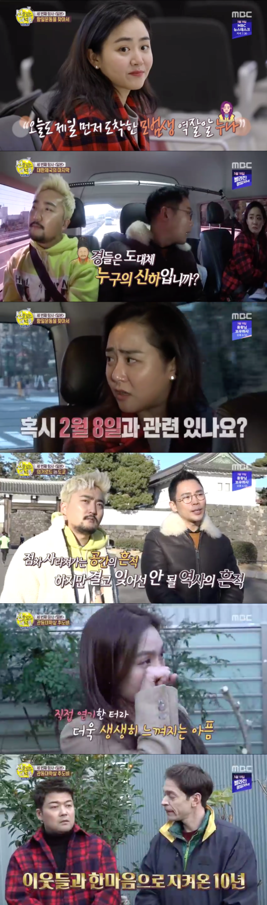 이어 전현무, 다니엘, 최희서는 관동대학살 터로 이동했다. 학살의 참상을 전혀 느낄 수 없는 철교 아래 공터였다. 이곳에도 추도비가 있었는데 비석 주위를 지키는 한국적인 소품이 놓여져 있어 뭉클함을 더했다. 전현무는 “일본 사람이 잘못을 인정하고 세운 비석이다. 봉선화 단체인데 반대 세력이 훼손할까 봐 사유지에 추도비를 건립했다”고 밝혔다. 최희서는 비문을 읽으며 눈물을 흘렸다.