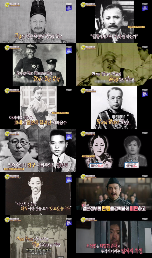 이와 함께 이봉창 의사에 관해 설민석은 “그 분은 조선말보다 일본말을 더 잘 썼다. 신 일본인이 되려고 노력했지만 모순 속에 결국 조선인으로 살기로 했다. 김구 선생 앞에서 ‘31년간 쾌락을 맛봤다. 더 나은 재미가 없을 것 같다. 영원한 쾌락을 위해 성업을 완수하겠다’고 말한 뒤 폭탄을 일왕에게 던졌다. 거사는 불발됐지만 독립정신을 지키기 위해 숭고하게 희생했다”고 밝혔다.