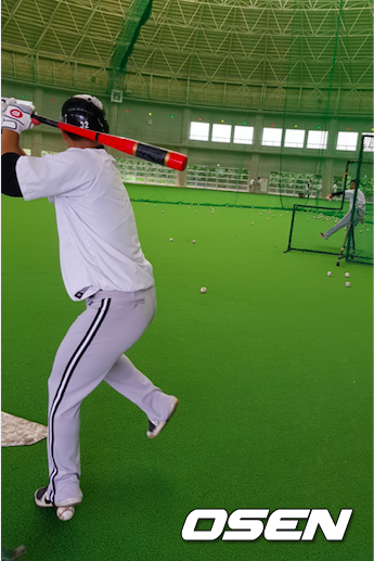신경식 타격코치는 “작년부터 연습 때 해 오던 방식이다”며 “왼 무릎이 굽혀지며 자세가 주저앉는 것을 막기 위한 방법이다. 공을 딛고 치면, 왼발에 힘을 주고 신경쓰게 된다. 작년에 이런 훈련을 하면서 타격이 좋아졌다”고 설명했다.