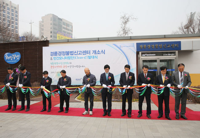 국민체육진흥공단(이사장 조재기) 경륜경정총괄본부는 지난 6일 미사리 경정장에서 정병찬 경륜경정총괄본부장, 한민호 사행성통합감독위원회 사무처장 그리고 유관기관 관계자 및 민간 모니터링단 등 100여명이 참석한 가운데 경륜경정 불법신고센터 개소식을 가졌다고 11일 밝혔다.