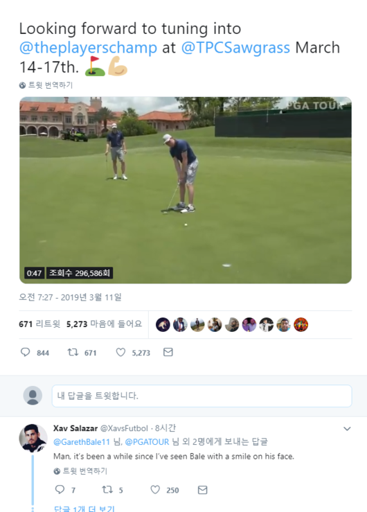 베일은 지난 11일(한국시간) 자신의 SNS에 본인의 골프 동영상을 올려 화제가 됐다.