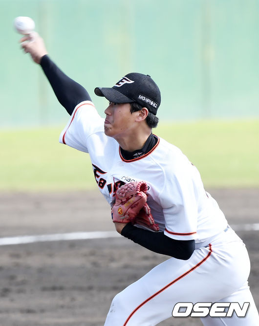 9회 마지막은 마무리 정우람의 몫이었다. 첫 타자 정병곤을 헛스윙 삼진 잡은 뒤 신인 3루수 노시환의 포구 실책으로 주자를 내보냈지만 후속 타자들을 범타 요리하며 승리를 지켰다. 시범경기 첫 날부터 정우람이 세이브를 올렸다. /waw@osen.co.kr