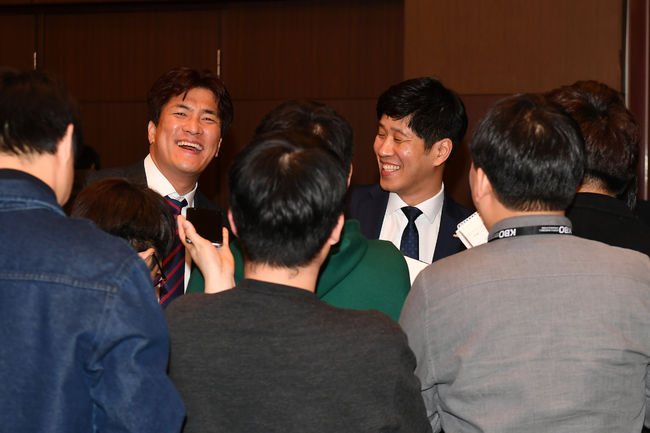 이유는 있었다. 30년지기의 두 감독은 이날 미디어데이 본 행사를 앞두고 웃음꽃을 피우며 이야기를 나눴다. 그러던 중 포스트시즌 각오에 대한 이야기가 나오자 차상현 감독은 "시즌 초반 도로공사를 꼭 잡아야겠다는 생각을 하고, 선수들에게 많이 강조했는데 그때마다 졌다"라며 "오히려 의식하고 집착하면 경기가 생각대로 안되는 것 같다. 그래서 이번에는 편안하게 즐기자고 이야기했다"고 밝혔다. 이 이야기를 들은 김종민 감독은 "집착해서 해야 한다"고 응수했다.