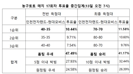 2018-19시즌 KBL 전자랜드-모비스전 대상 농구매치 17회차 중간집계 결과