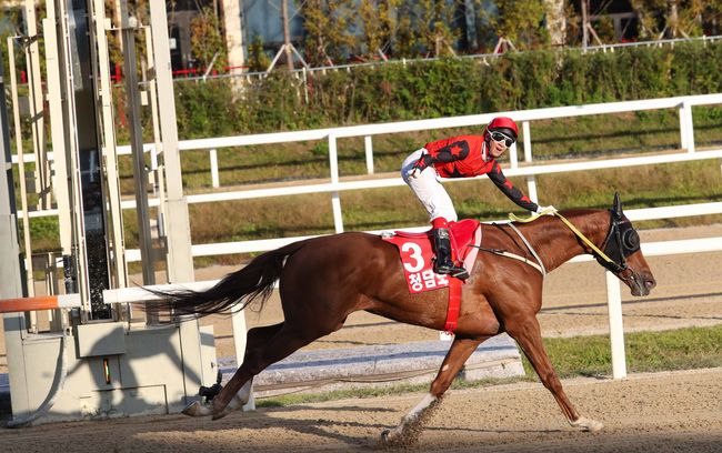 데뷔 직후 3회 연속으로 2위와 7~13마신차의 여유승을 거두며 일찍이 이름을 알렸다. 동갑내기 라이벌 ‘마스크’와는 지난 해 3월 ‘스포츠서울배’에서 맞붙어 3/4마신차로 석패하며 준우승에 머물렀다. 현재 4연승 중으로 상승세를 몰아 설욕에 나선다. /letmeout@osen.co.kr