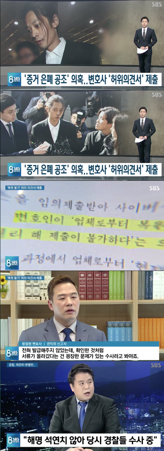 14일 오후 방송된 SBS '8 뉴스'에서는 지난 2016년 8월 정준영의 불법 동영상 촬영 당시 수사 정황이 보도됐다.