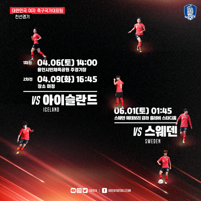 윤덕여 감독이 이끄는 여자축구대표팀이 오는 4월 아이슬란드와의 국내 친선경기, 5월 스웨덴과의 원정 친선경기를 통해 2019 국제축구연맹(FIFA) 프랑스 여자월드컵을 향한 본격적인 준비에 돌입한다.