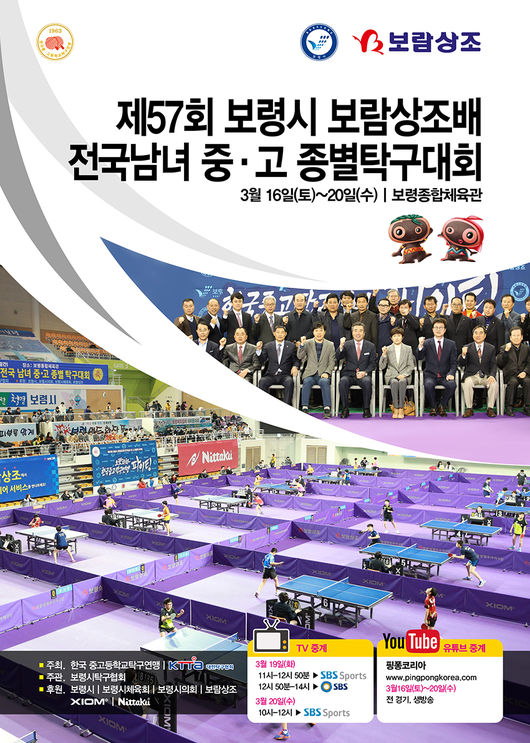 [사진]제 57회 보령시 보람상조배 전국남녀 중·고 종별탁구대회 공식 포스터 /제공=보람상조