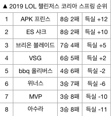 브리온은 15일 오후 서울 대치동 프릭업스튜디오에서 열린 '2019 LOL 챌린저스 코리아(이하 롤 챌린저스)' 스프링 스플릿 MVP와 2라운드 경기서 2-0으로 승리했다. 브리온은 시즌 7승 4패 득실 +5를 올리면서 3위를 유지했다. MVP는 3승 8패 득실 -10을 기록, 통한의 6연패를 당하고 말았다.
