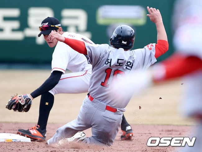 발이 느린 것으로 잘 알려진 허도환이지만 두 번의 슬라이딩으로 최선을 다한 베이스러닝에 박수가 터져 나왔다. 유니폼 바지 곳곳이 흙투성이에 구멍이 날 정도로 몸을 사리지 않았다. 30대 중반 베테랑이고, 날씨가 쌀쌀한 시범경기인 것을 감안하면 이렇게까지 무리할 필요는 없었다.