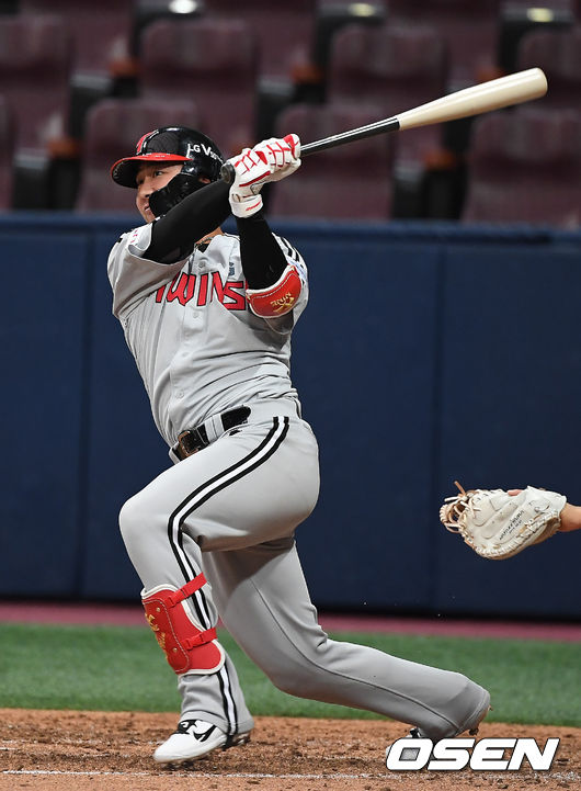 LG 양종민이 시범경기 첫 홈런을 터뜨렸다.